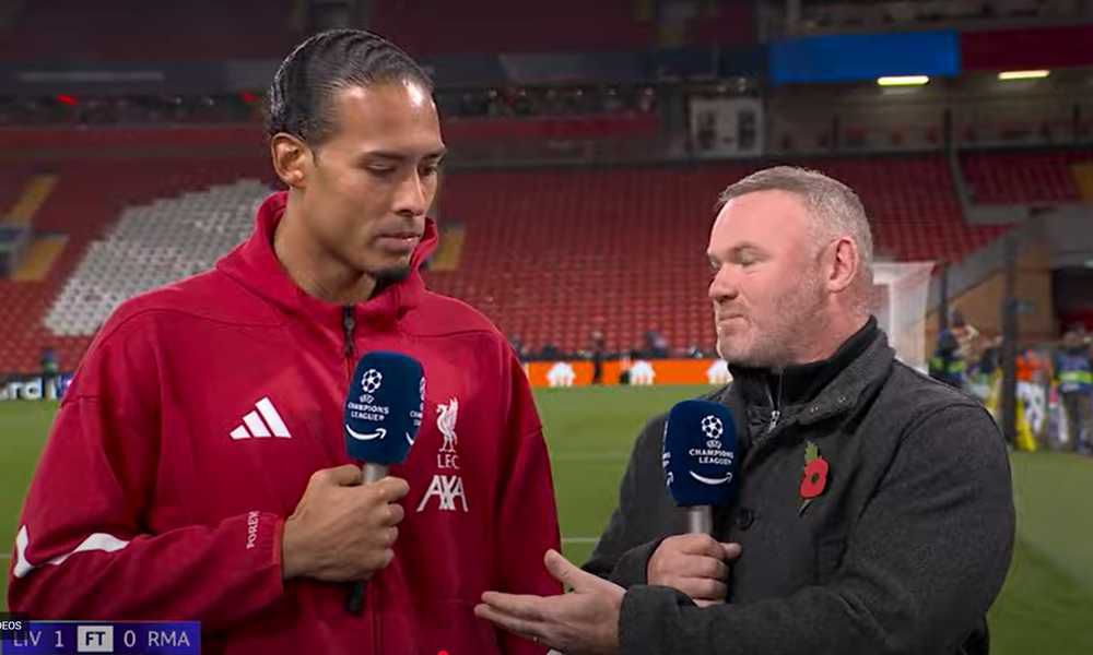 Virgil van Dijk clapped back at Wayne Rooney’s criticism in an awkward post-match interview on Tuesday night.