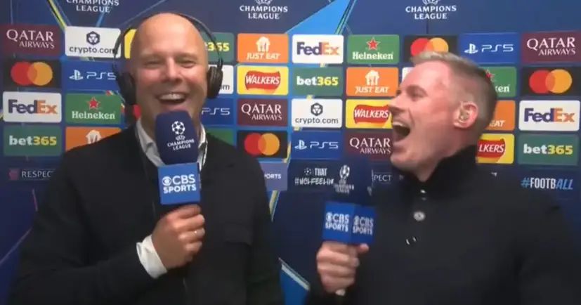Arne Slot’s interview with CBS Sports after the Real Madrid win quickly turned into a roast — with Jamie Carragher becoming a sudden victim.