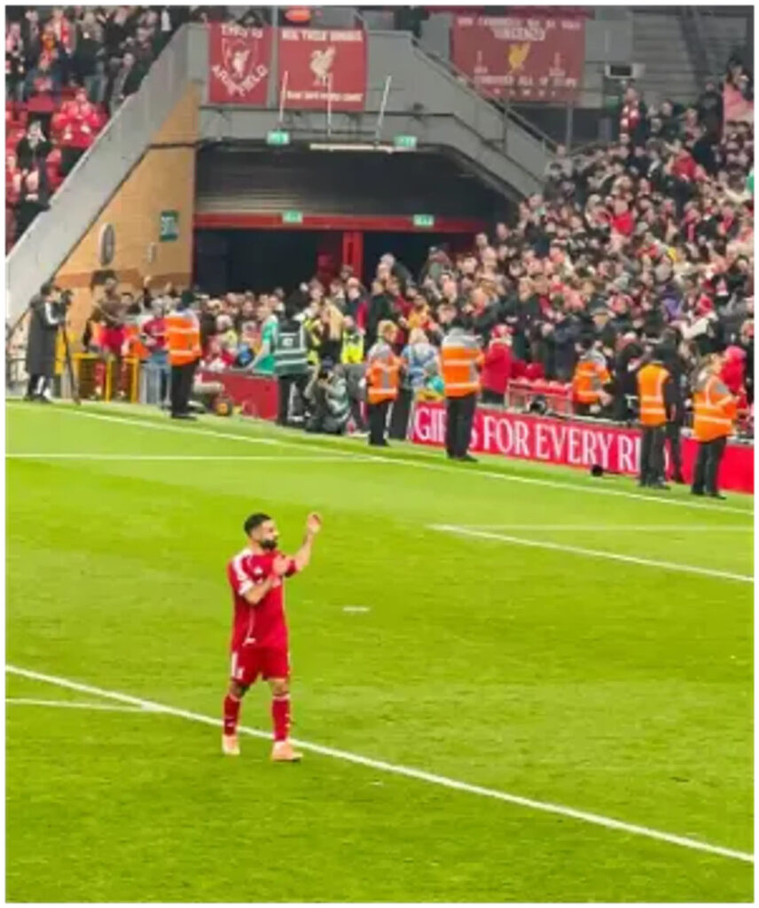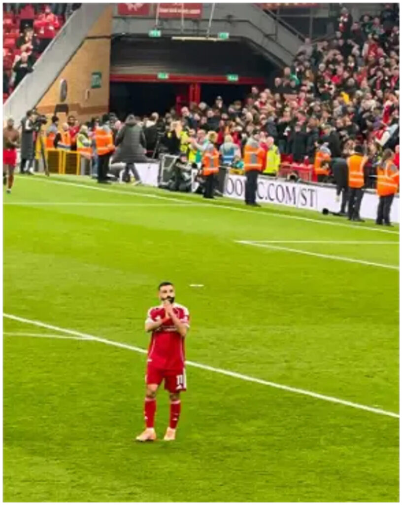 As the fans sang his chant, Salah could be seen waving goodbye at them and also clapping to show his appreciation for him.
